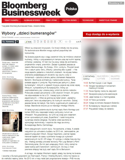 RCS Mediagroup – Daily Mail – The Guardian – BG Daily News – TNT Post Italia – Espress Edizioni – SHOTS Magazine – Bloomberg Businessweek Polska – Spazio Concept – Torino art Gallery